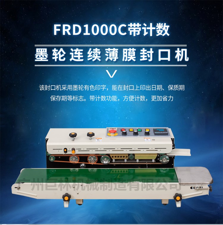 本机是新一代集印码,封口,连续输送为一体的自动薄膜封口机,具有印字清晰、顔色可选、即印即干、换字方便等特点。